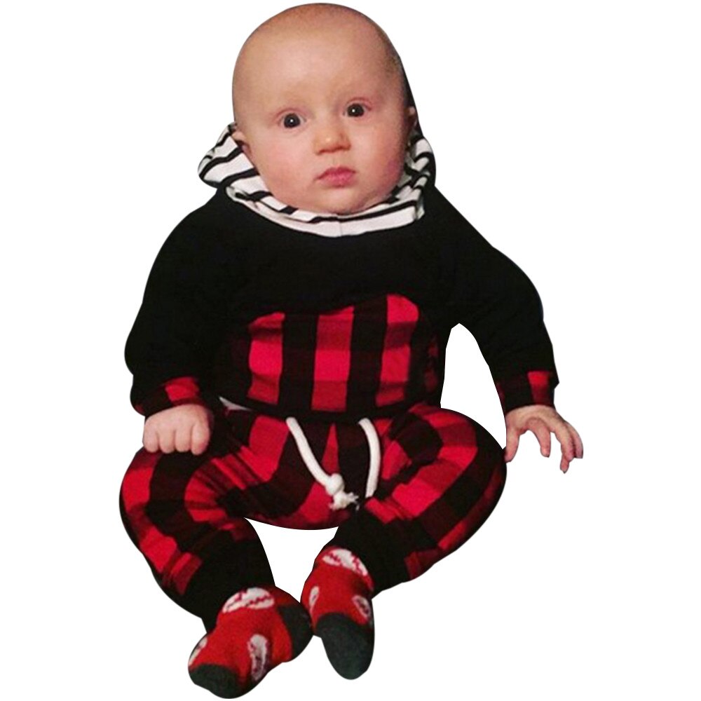 2Pcs Babies Hooded Plaids Stripes Clothing Set