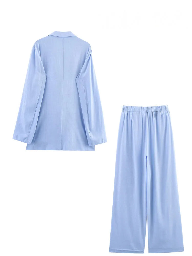 HH Women Casual Suit Solid Turn-Down Collar Long Sleeves Single-Breasted Blazers+Elastic Waist Pockets Pants Female Sets