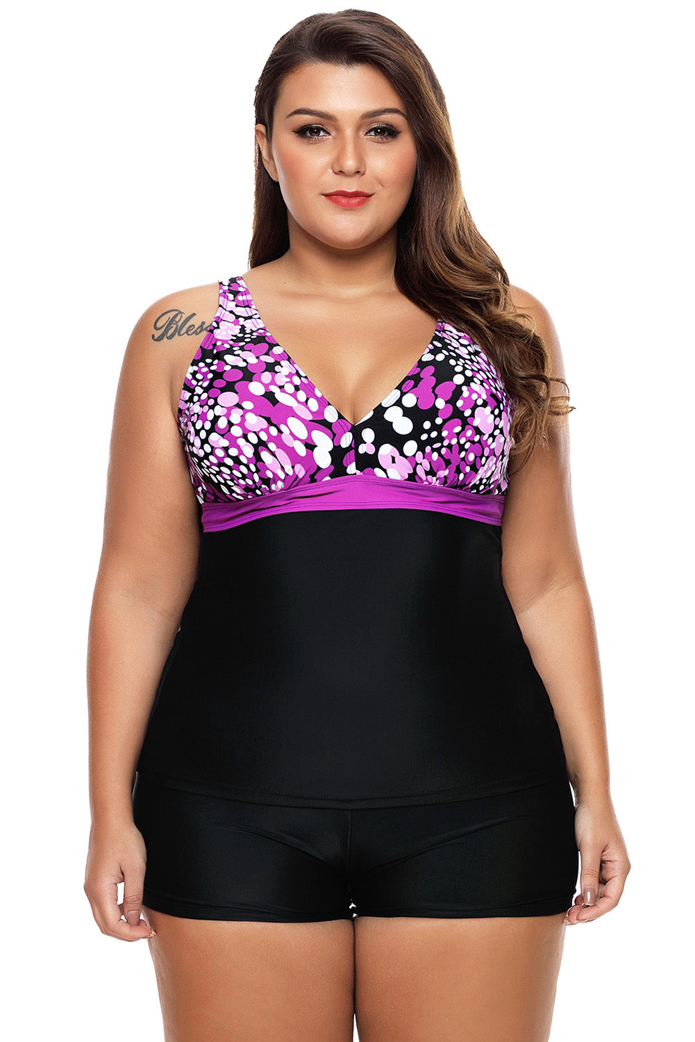 Purple White Spots 2pcs Tankini Bathing Suit