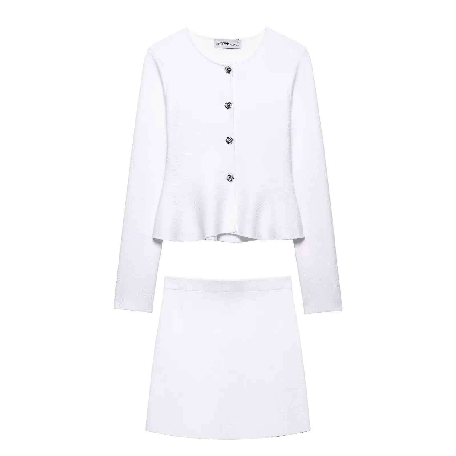 Women's Fashion Elegant Skirt Suit Round Neck Long Sleeve Knitted Sweater Top Elastic Waist Mini Skirt Female Spring Summer New